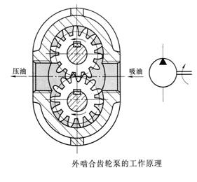 在齒輪泵的工作過程中,只要兩齒輪的旋轉(zhuǎn)方向不變,其吸、排油腔的位置也就確定不變。這里嚙合點處的齒面接觸線一直分隔高、低壓兩腔起著配油作用,因此在齒輪泵中不需要設(shè)置專門的配流機(jī)構(gòu),這是它與其他類型容積式液壓泵的不同之處。