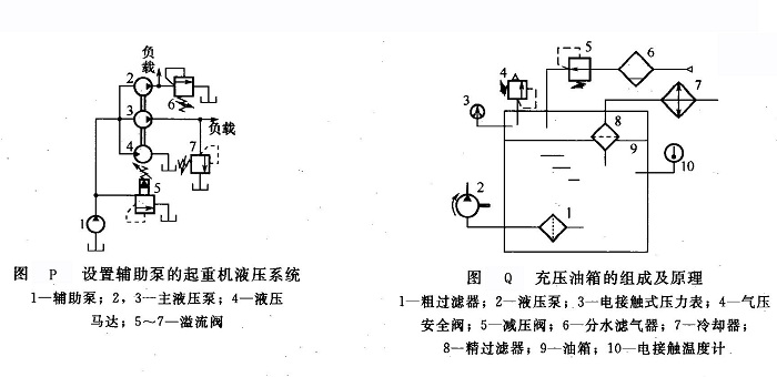 ④大流量泵采用高架油箱,即將油箱安裝在液壓泵的上方(圖O),形成倒灌。