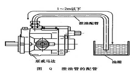 泵的吸、壓油口和泄油口的配管通徑應(yīng)等于或大于產(chǎn)品規(guī)定值。為了避免鋼管裝配不妥,使泵產(chǎn)生強制偏移而引起軸伸上受徑向力及噪聲傳遞,應(yīng)接一段軟管。為了避免空氣吸入,吸油管應(yīng)插入液面以下,推薦插入液面深度為離最低液面(3~4)d(d為管道通徑);油管口離油箱底面150mm以上。管端切45°斜口。對允許安裝在油箱上的自吸泵,通常泵軸線離液面不大于500mm。即使泵安裝位置低于油箱液面,其管道也應(yīng)盡可能短,盡量不接直角彎頭。避免安裝截止閥,以免因操縱失誤而使泵吸空,并推薦采用箱側(cè)吸油過濾器,因其帶有自封閥,對更換濾芯及維修泵均無影響。泄油管的長度應(yīng)盡量短,若超過1~2m,應(yīng)增大通徑,以保證殼體內(nèi)壓力不超過0.03MPa,以免軸頭密封損壞。泄油管應(yīng)單獨直接回油箱,遠離吸油管,插入液面以下。不得與系統(tǒng)回油管合用。對于配有幾個泄油口的泵或馬達,應(yīng)選最高位置的接口配管,如圖Q所示,配管的部分高度應(yīng)高于泵體最高部位的高度。泵逆向使用即作馬達時,其回油管應(yīng)遠離吸油管,插入液面以下,管端切45。斜口,且斜口朝向油箱壁。