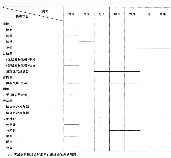 液壓系統(tǒng)檢查與維護(hù)項(xiàng)目及周期表