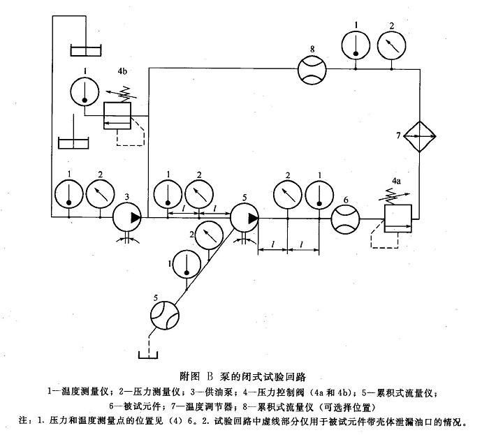 c. 如果測試的是雙向泵,應(yīng)對附圖A和附圖B所示的試驗回路作適當(dāng)修改,因為附圖A和附圖B所示的試驗回路僅適用于單向泵的試驗。